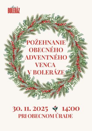 Advent sa blíži a preto príďte spolu s nami, s dôstojným pánom Máriom Bosým a so speváckym zborom SiNaj požehnať v nedeľu 30. novembra náš obecný adventný veniec.