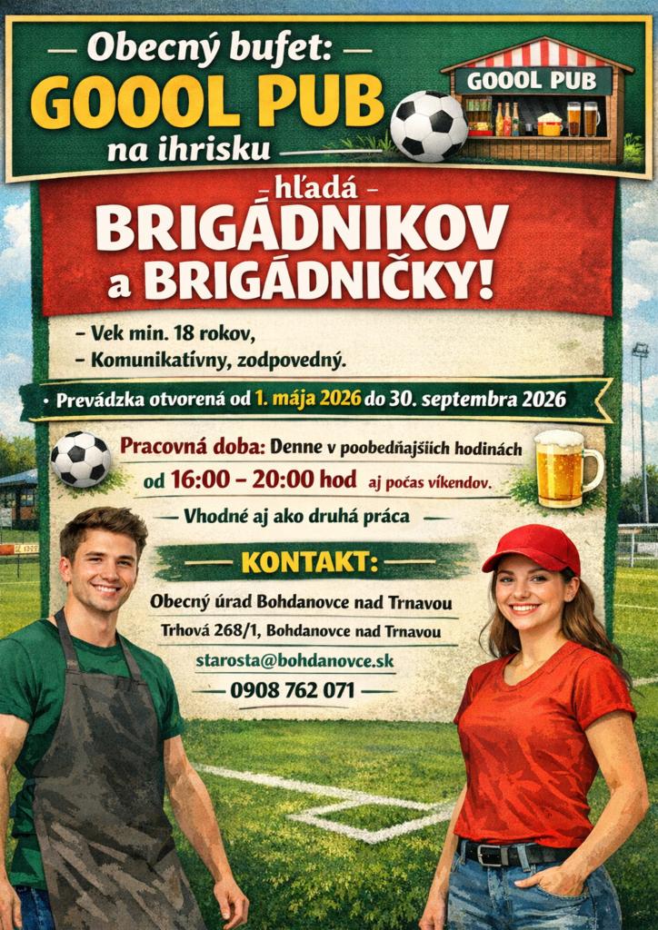 Obecný bufet na ihrisku v Bohdanovciach nad Trnavou prijme brigádnikov a brigádničky.