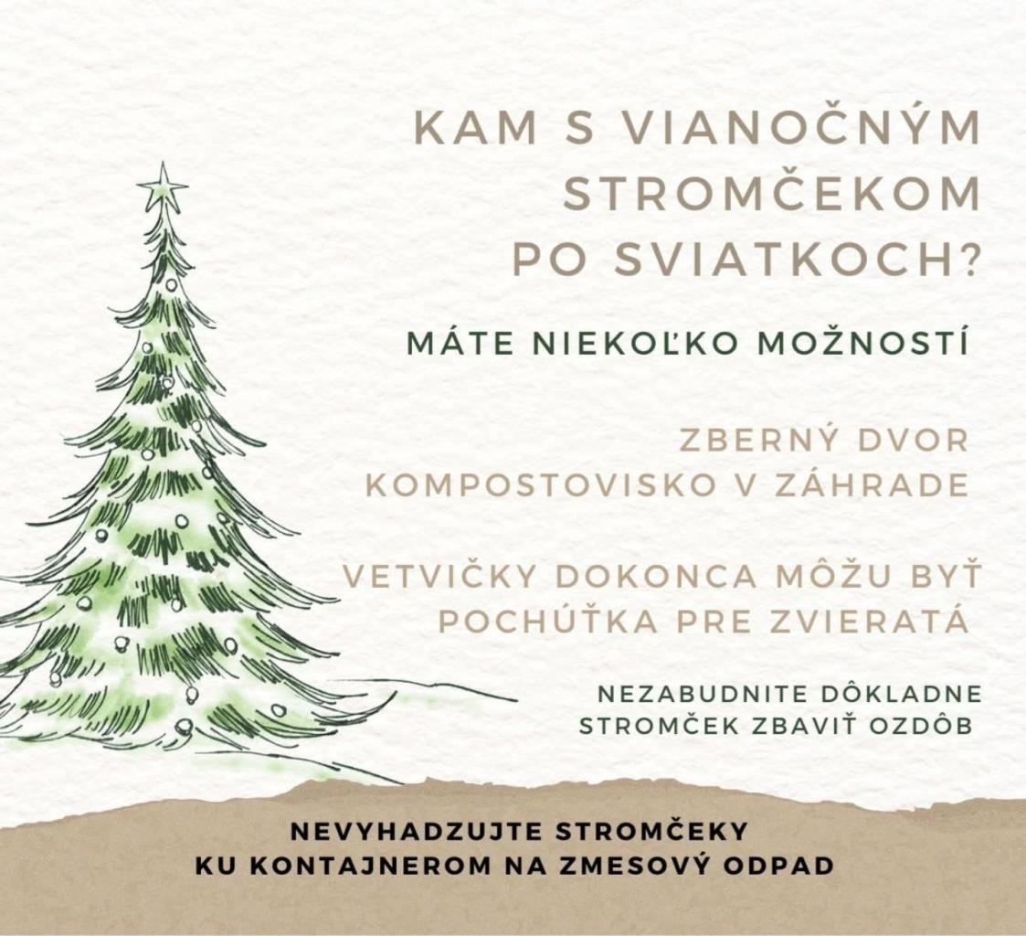 V piatok 9. januára sa uskutoční zber živých vianočných stromčekov. Stromčeky treba vyložiť ráno do 7:00 hod. na viditeľné miesto pred dom a zbaviť všetkých ozdôb.