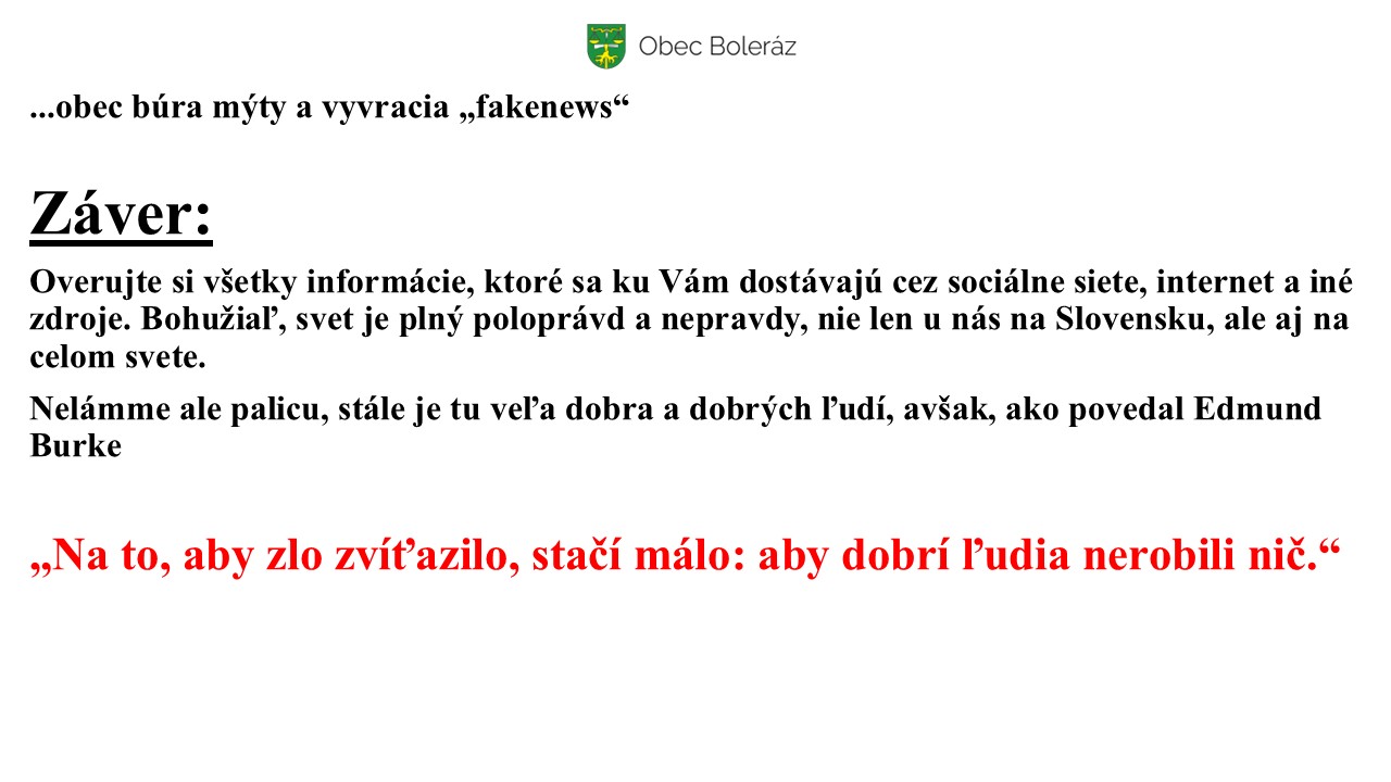 Mýty, fakty a pribudli aj "fakenews", prosíme čítajte s porozumením.